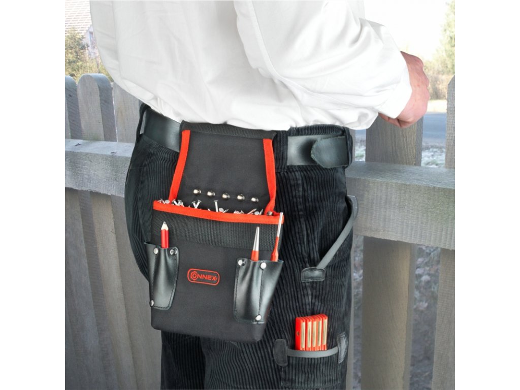 Kapsa na hřebíky a další nářadí na opasek, polyester, robustní, jedna velká kapsa na hřebíky a čtyři menší oddíly na nářadí, 28x19 cm