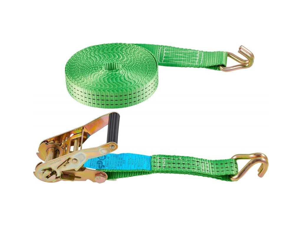PES upínací popruh, 38mmx8m, 3t, s ráčnou, zelený, L, s háky