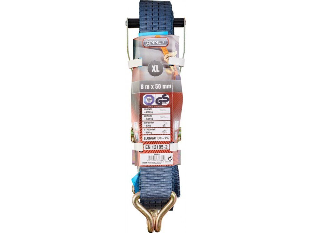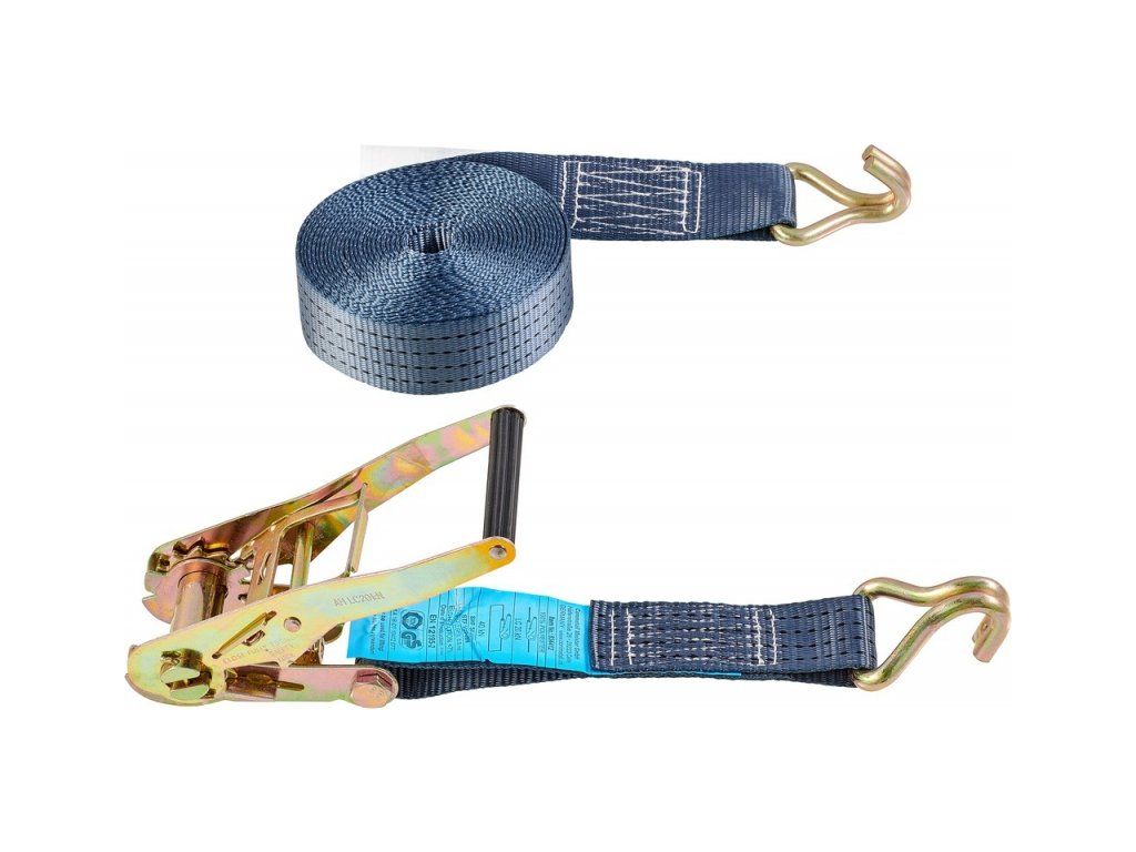 PES upínací popruh, 50mmx8m, 4t, s ráčnou, šedý, XL, s háky