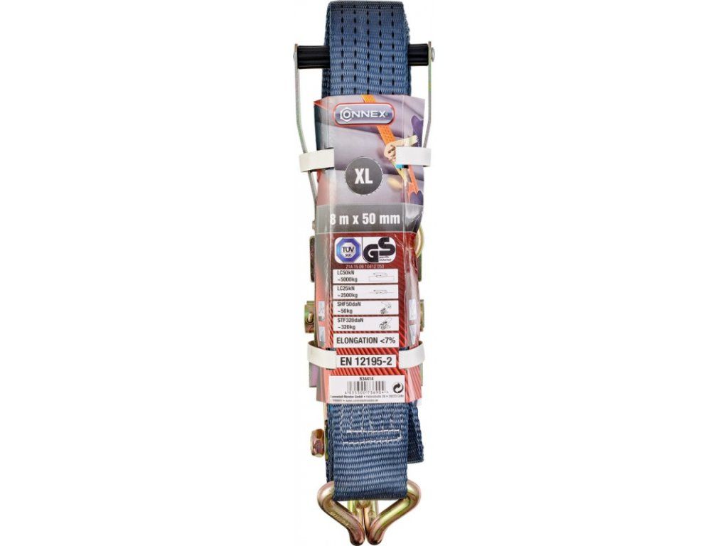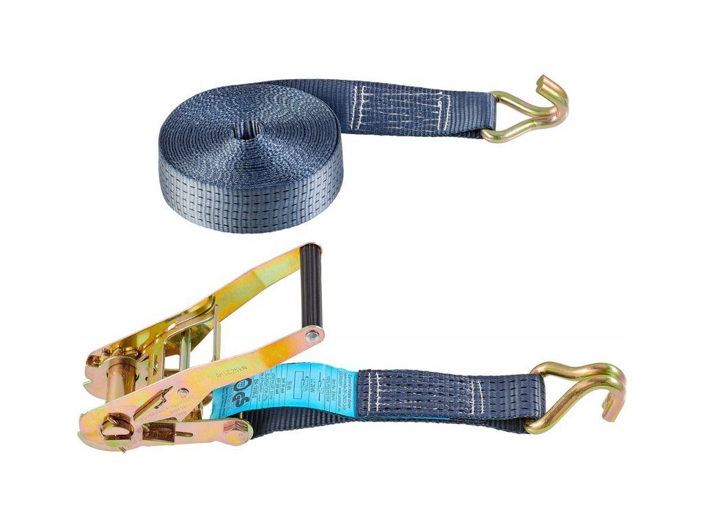PES upínací popruh, 50mmx8m, 5t, s ráčnou, šedý, XL, s háky