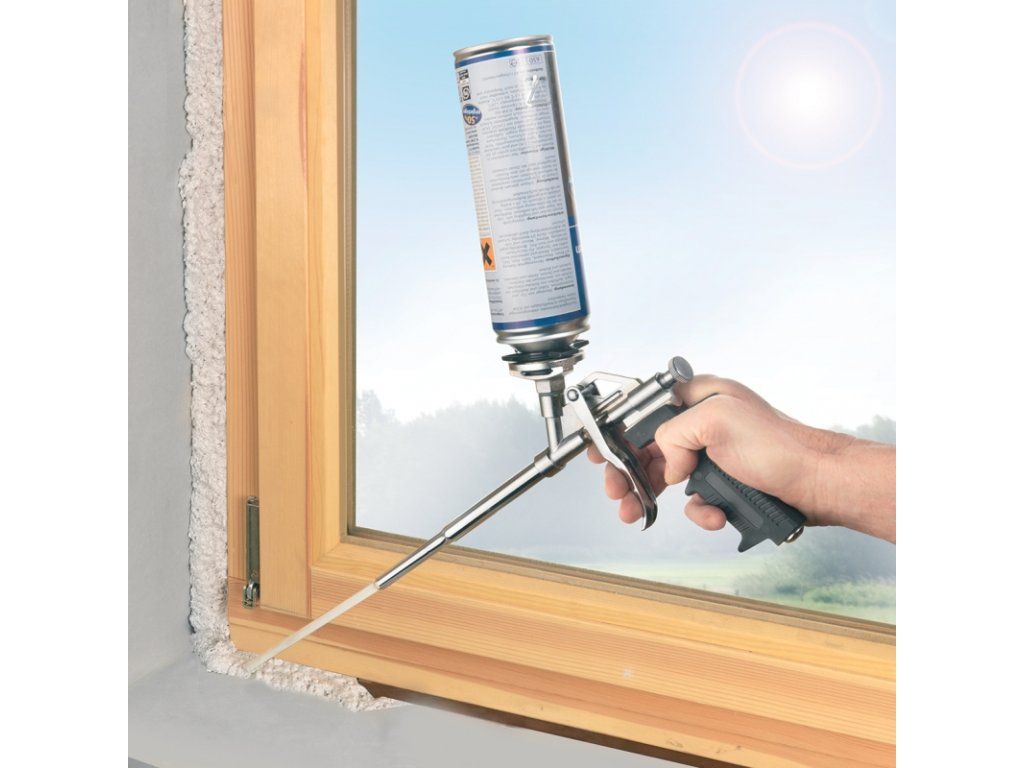 Pistole se systémem NBS, vhodné pro všechny běžné montážní PU pěny, poniklovaná, regulace pomocí šroubu pro precizní práci, ergonomicky tvarovaná rukojeť