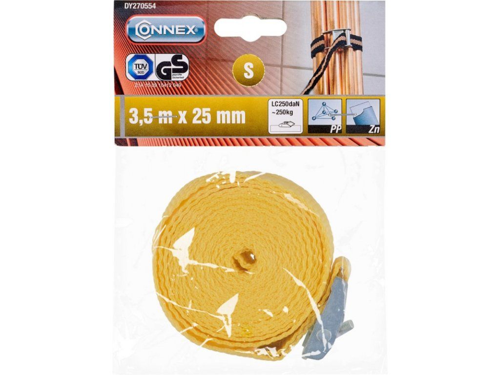 PP upínací popruh, 25mmx3,5m, 130kg , žlutý, S