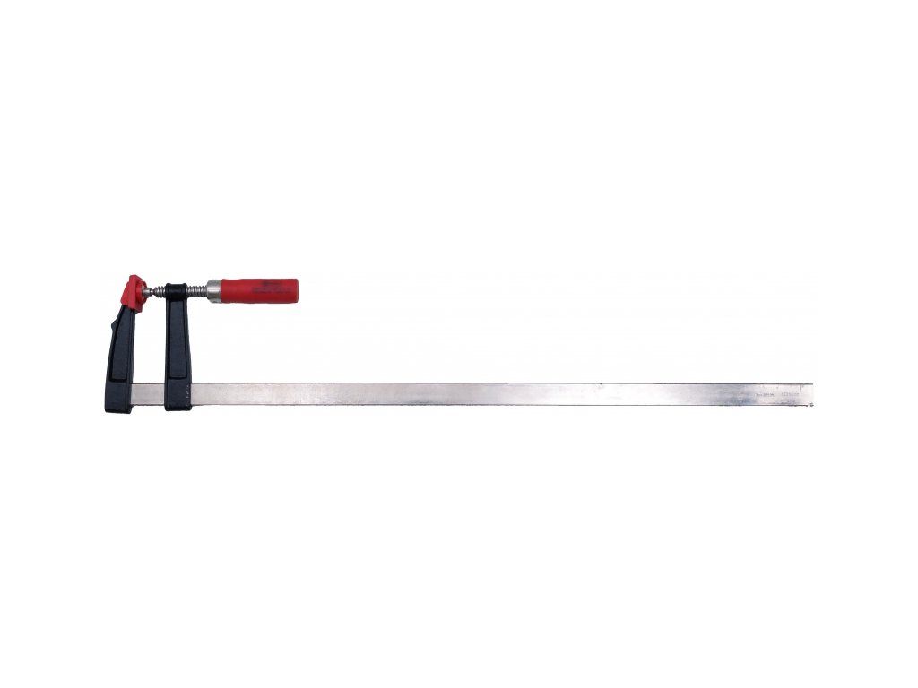 Stolařská svěrka 120x800 mm, z tvárné litiny, s plochou poniklovanou tyčí (A3 ocel) 29 x 6 mm, s ochrannou plastovou krytkou, šroub poniklovaný, plastová rukojeť