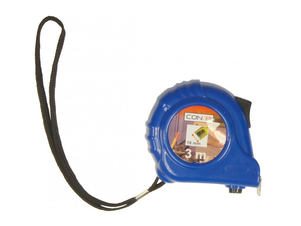 Svinovací metr 3 m, kovový, plastový obal, praktické STOP tlačítko, třída přesnosti II, šířka 16 mm