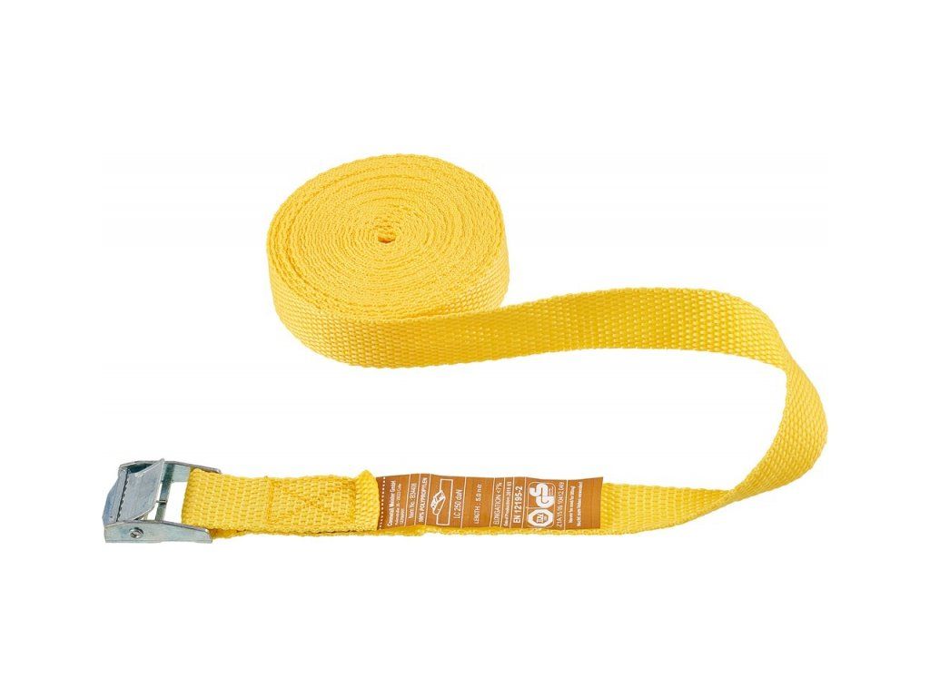 PP upínací popruh, 25mmx5m, se sponou, žlutý